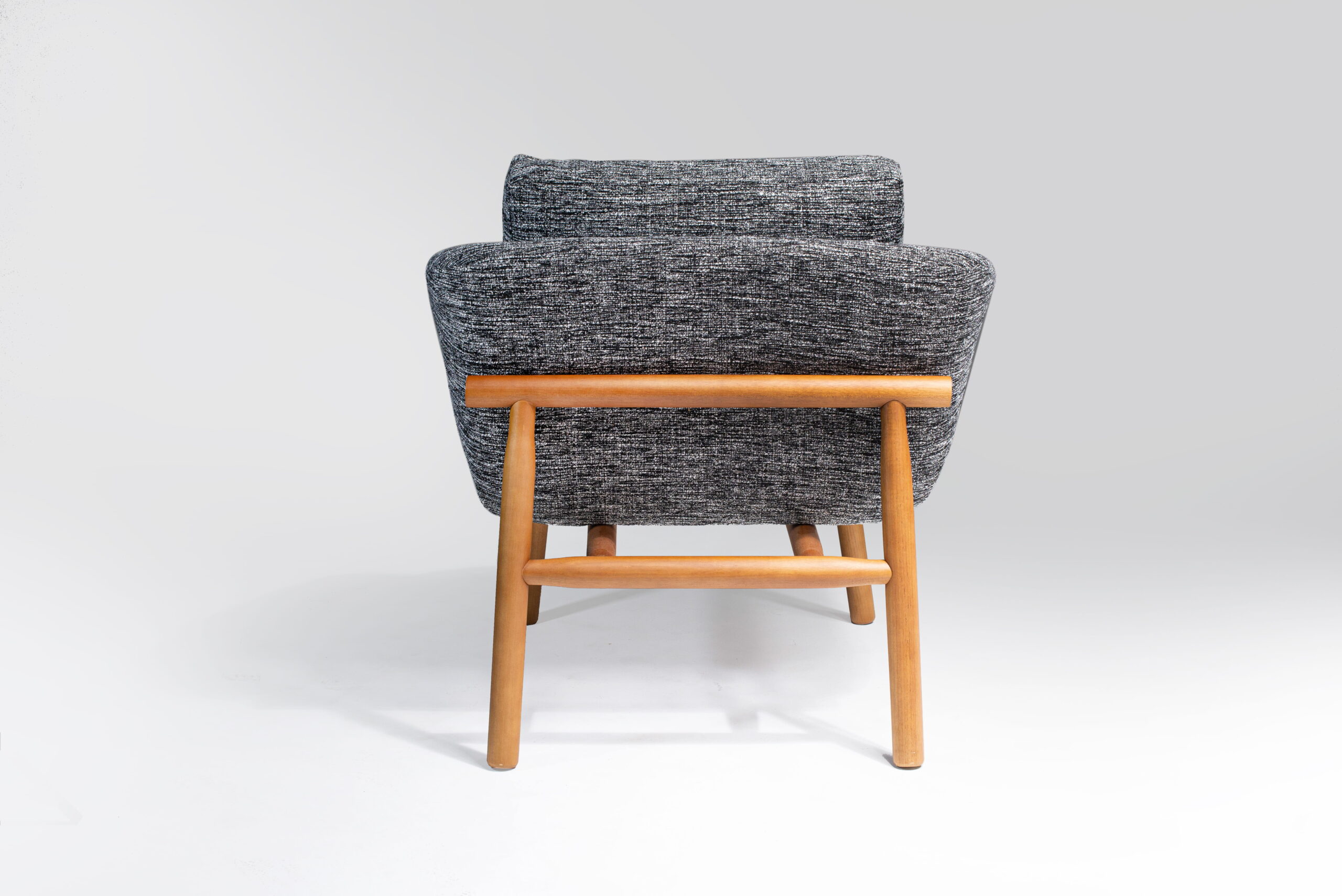 Fixo, em chapa de MDF 9mm, recoberto por espuma de densidade D18 e D26 e manta acrílica.